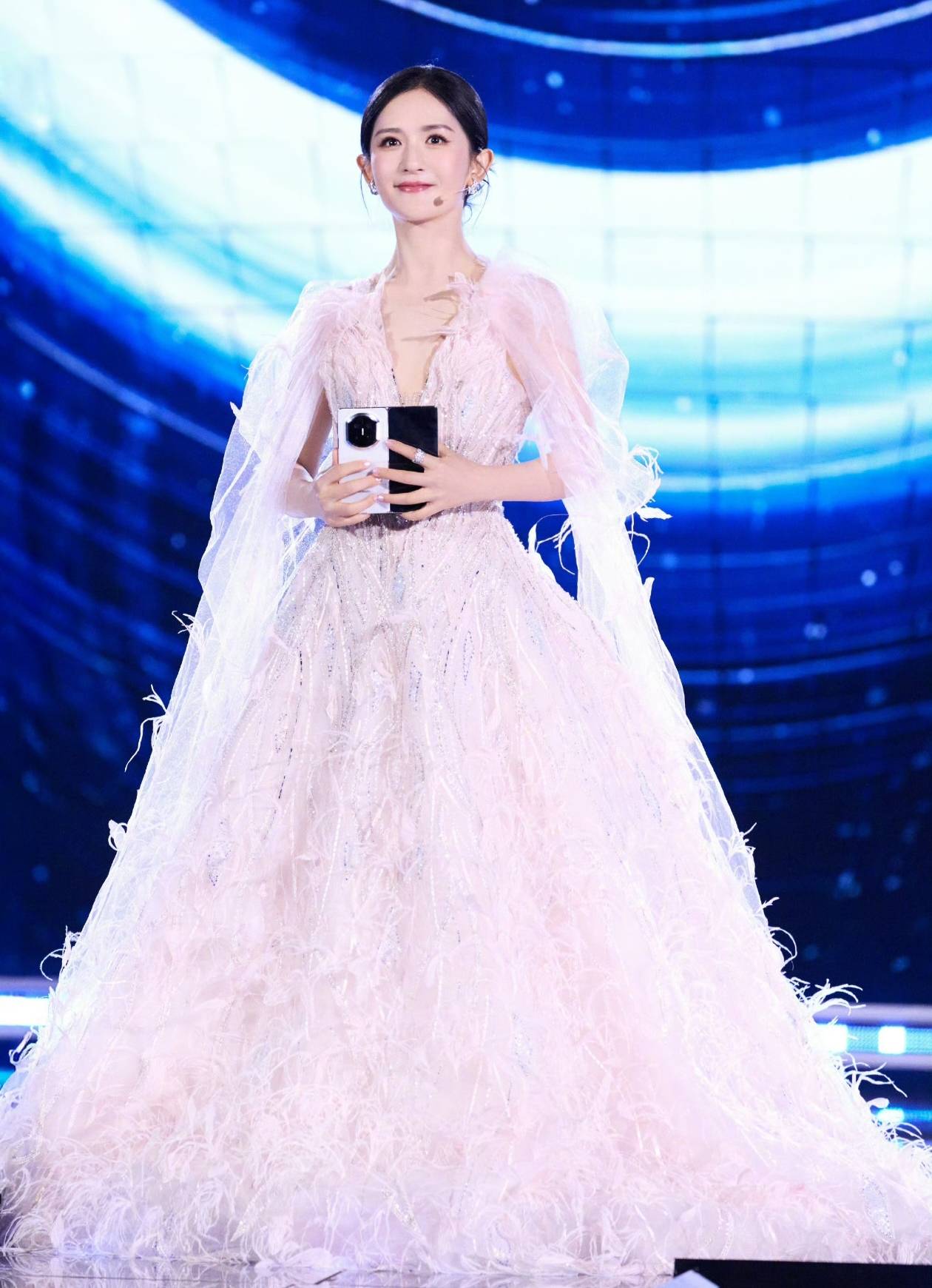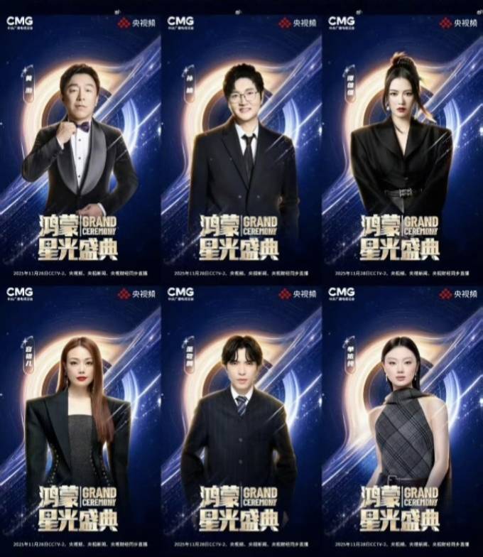 盛典现场还有一个超酷的细节:四位主持人拿的不是普通手卡,而是华为折叠屏!撒贝宁和黄晓明用的是华为Mate XTs三折叠,谢娜和王冰冰用的是华为Mate X7。这两款产品都搭载鸿蒙操作系统,大屏显示清晰,翻页流畅无延迟,这波操作简直是科技与艺术的完美结合。